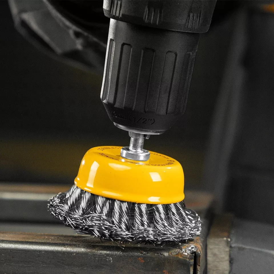 A 65 mm átmérőjű csésze alakú fazékkorong kifejezetten durvább tisztítási feladatokra készült, ahol vastagabb szennyeződésrétegek, régi festék vagy erősebb rozsdásodás eltávolítása szükséges.