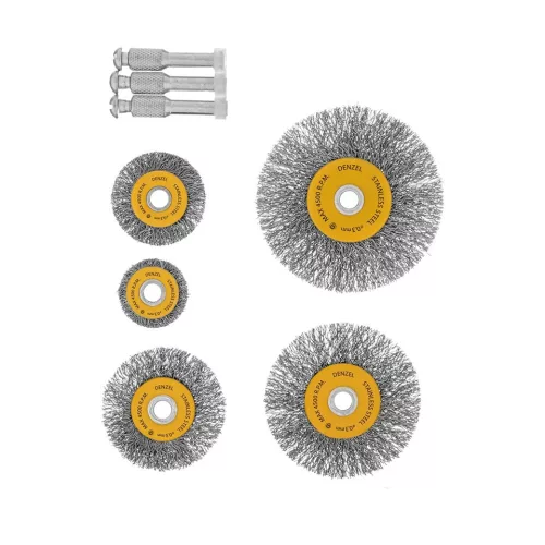 DENZEL 5db-os INOX drótkorong készlet fúróba, kreppelt, lapos+ rögzítőcsapok, 0,3 mm szálvastagság