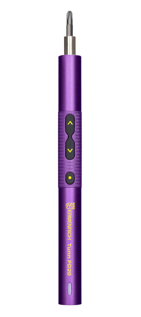 Az Ermenrich Tunn PD20 egy akkumulátoros csavarhúzó kisebb kötőelemek behajtásához és kicsavarozásához. Sötét és szűk helyeken történő munkavégzésre is alkalmas. Alkalmas kisebb készülékek és eszközök – laptopok, okostelefonok, fényképezőgépek és videokamerák, szemüvegek stb. – összeszereléséhez, szétszereléséhez és javításához. A készülék 24 mágneses bitből álló készlettel és beépített LED-háttérvilágítással rendelkezik.