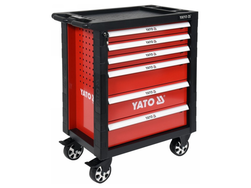 A YATO YT-55300 szerszámkocsi egy masszív és megbízható műhelyszekrény, amely kifejezetten autószerelő műhelyek és szervizállomások számára lett kialakítva. A kocsi 6 fiókkal rendelkezik, melyek golyóscsapágyas síneken mozognak. A felső három fiók egyenként 25 kg, míg az alsó három egyenként 35 kg terhelést bír el, így a szekrény minden szinten stabil és nagy teherbírású.