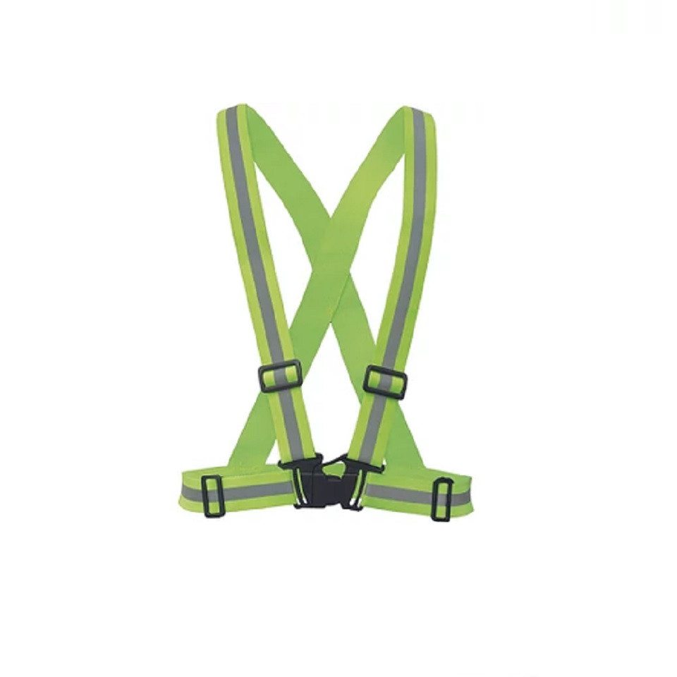 A mellény fluoreszkáló sárga anyagból készült, amelyet két fényvisszaverő csík egészít ki a maximális észlelhetőség érdekében.