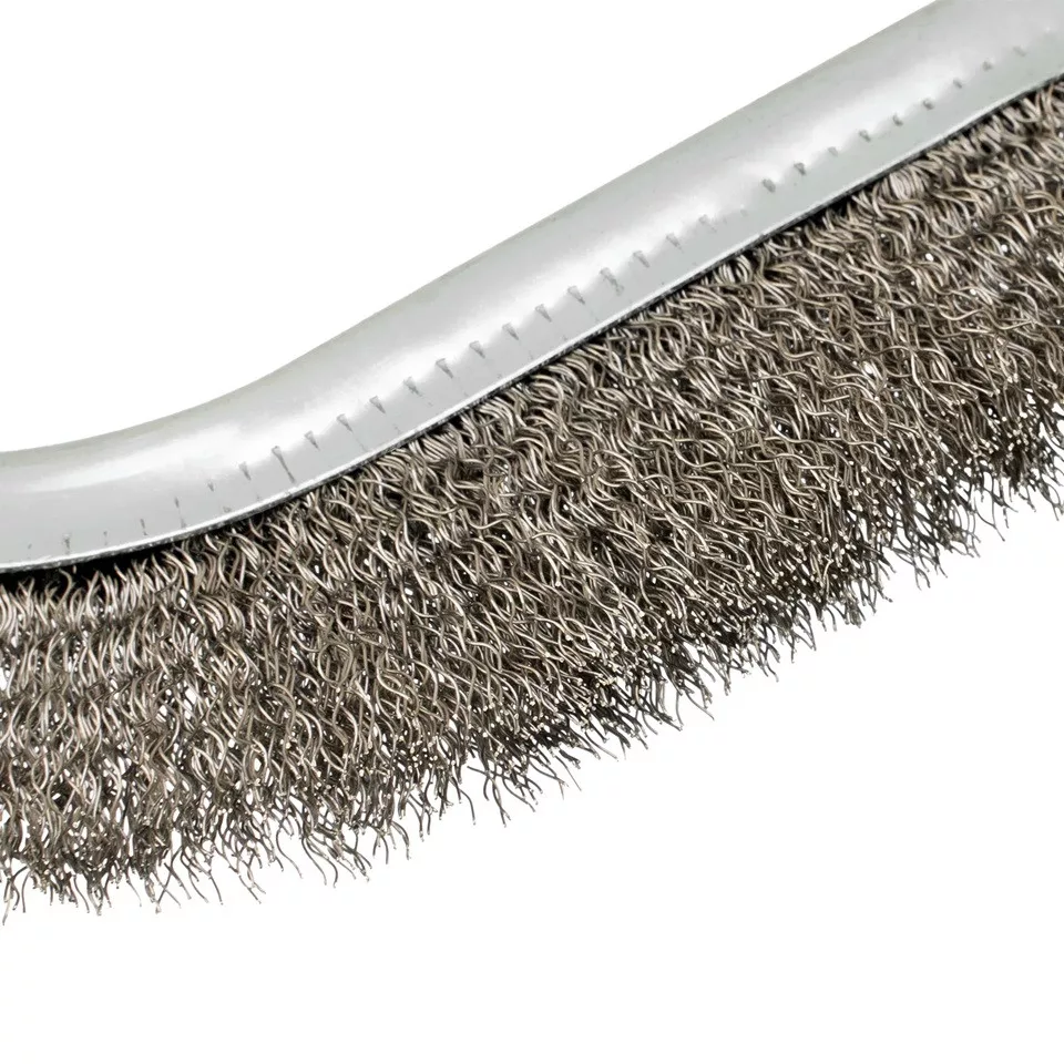 Az erősen abrazív INOX sörték biztosítják a hatékony tisztítást, míg az ívelt test lehetővé teszi a precíz munkát összetett textúrájú felületeken is.