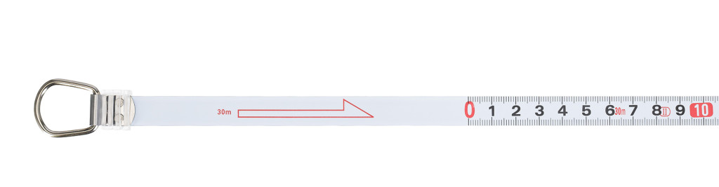• Egyoldalas, csiszolt acélból készült földmérő mérőszalag, 30 m hosszú