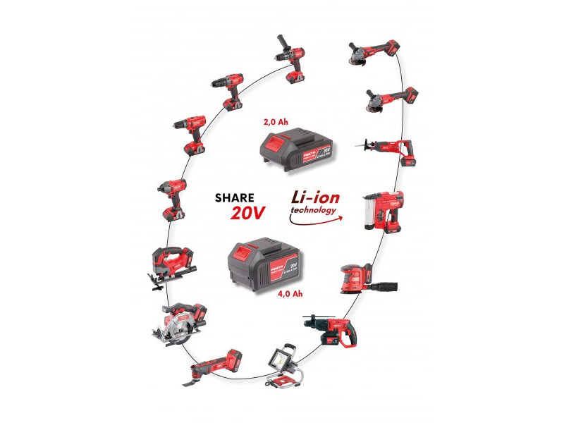 A töltő a FESTA Power X Tools SHARE 20V rendszer része, amely lehetővé teszi, hogy egyetlen akkumulátor több különböző szerszámgépet is üzemeltessen. Ez pénzt és helyet takarít meg, miközben maximális kényelmet nyújt.