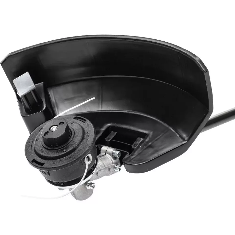A beépített védőpajzs növeli a biztonságot, így a fűkasza stabil és megbízható választás ház körüli munkákhoz.