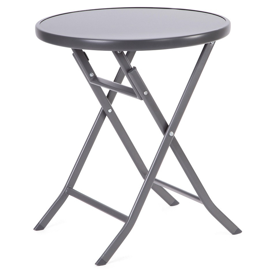 A szett két kényelmes, összecsukható székből és egy 60 cm átmérőjű, 71 cm magas kerek asztalból áll.
