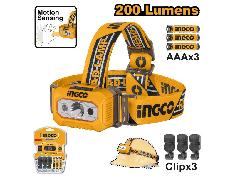 INGCO elemes 200 lm fejlámpa (3XAAA)