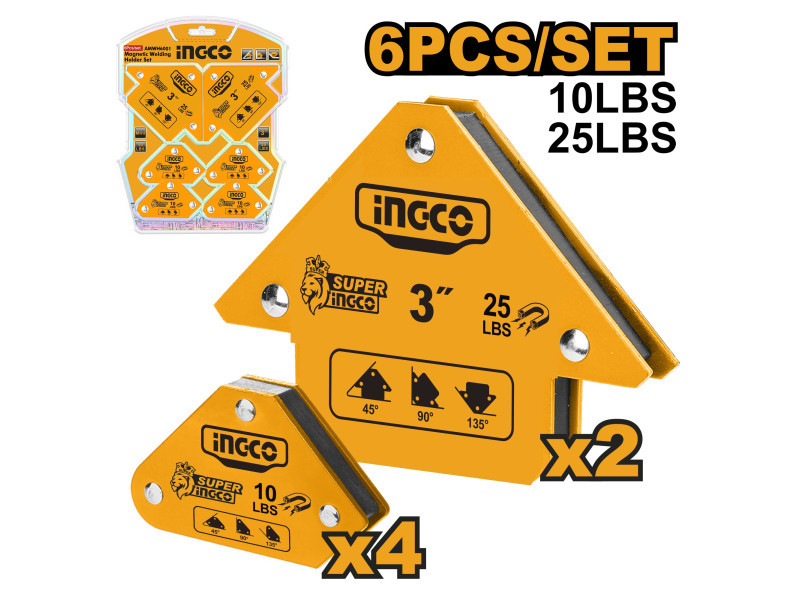 INGCO mágneses hegesztőszög készlet – AMWH6001 | 6 db | 4,54 kg / 11,35 kg
