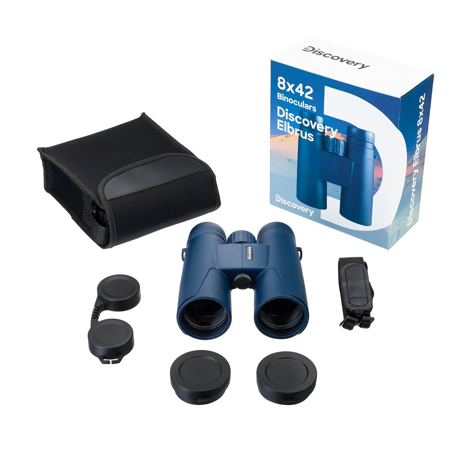 A Discovery Elbrus 8x42 kétszemes távcső a Levenhuk és a Discovery Channel együttműködésének eredménye: masszív, megbízható és minden terepen megállja a helyét.