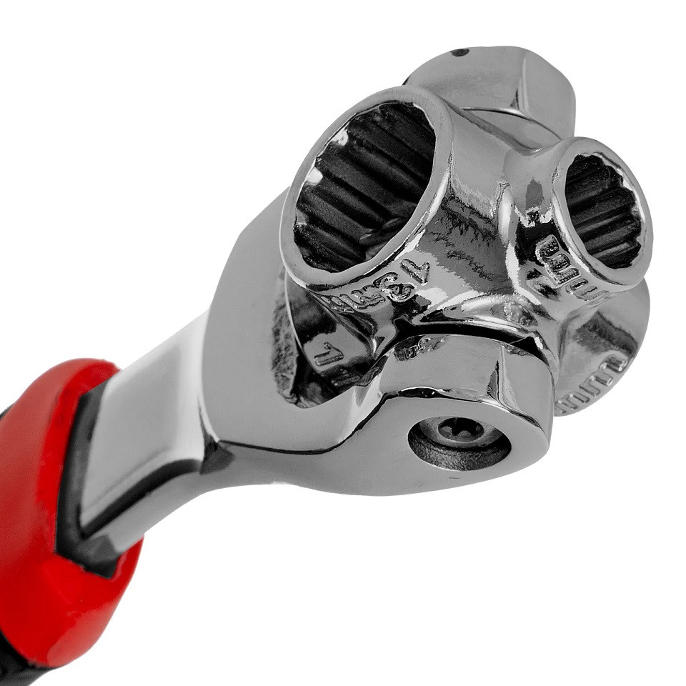 A kulcs króm-vanádium (CrV) acélból készült, ami garantálja a tartósságot, kopásállóságot és hosszú élettartamot. Kompakt mérete és multifunkciós kialakítása miatt kiváló alternatívája egy teljes dugókulcskészletnek.