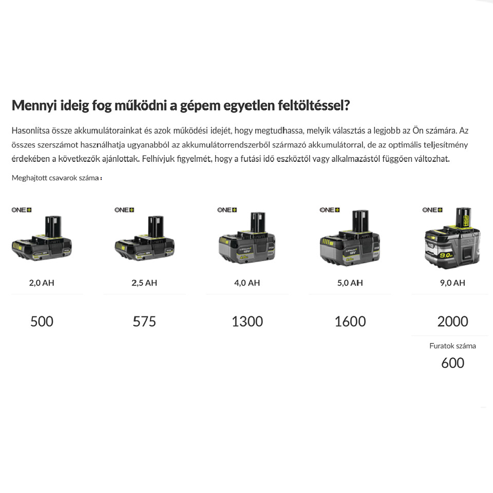 Kompatibilitás RYOBI ONE+™ akkumulátorok