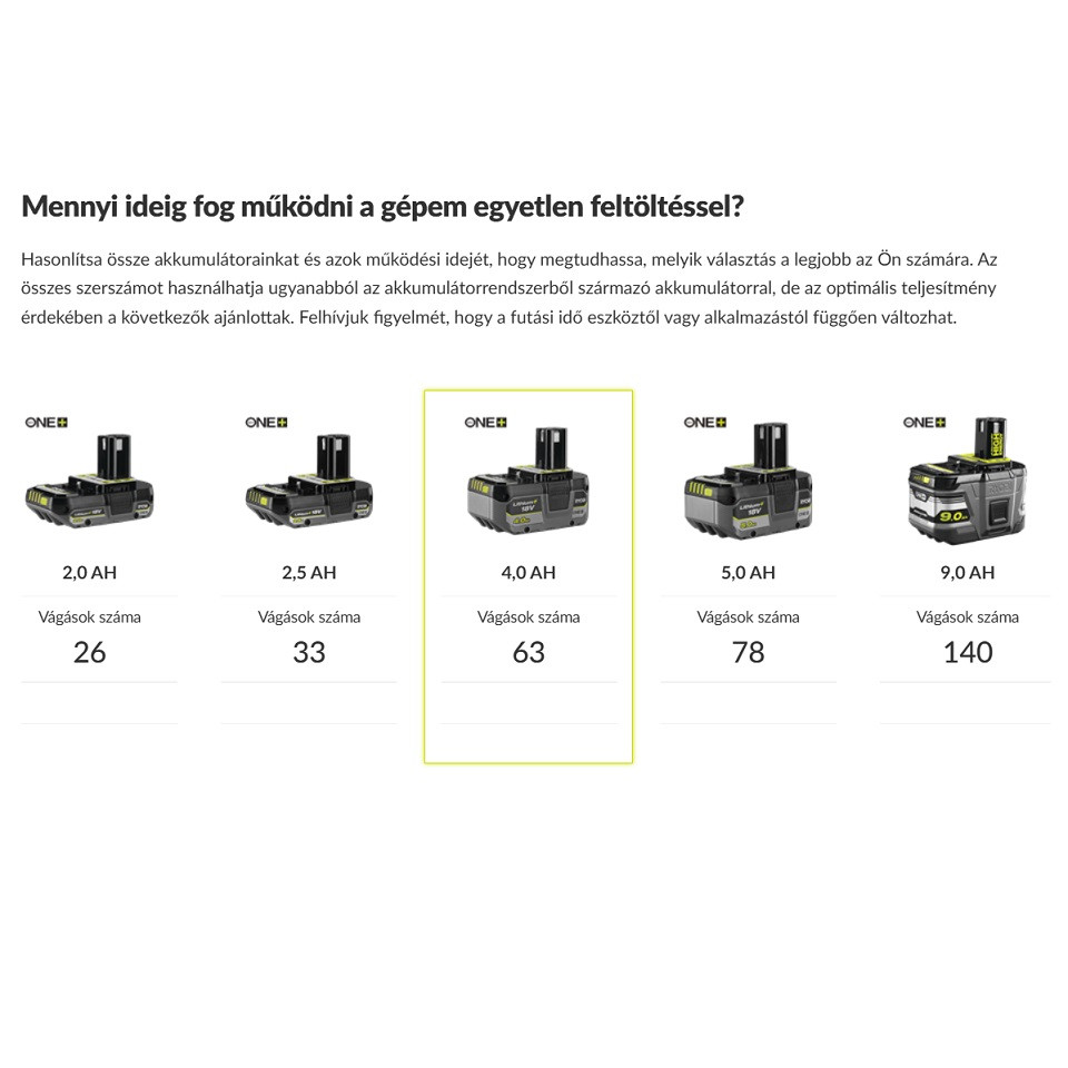 Becsült működési idő 4.0 Ah akkumulátor ~ 20-25 perc