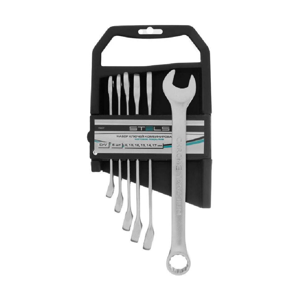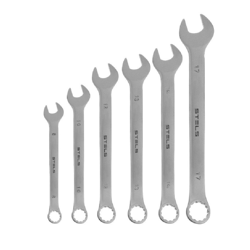 A STELS 6 darabos csillag–villáskulcs készlet (8–17 mm) professzionális megoldás minden szerelő, karbantartó és barkácsoló számára, aki tartós és megbízható kéziszerszámot keres. A kulcsok CrV króm-vanádium acélból készültek, ami kiemelkedő szilárdságot és hosszú élettartamot biztosít.