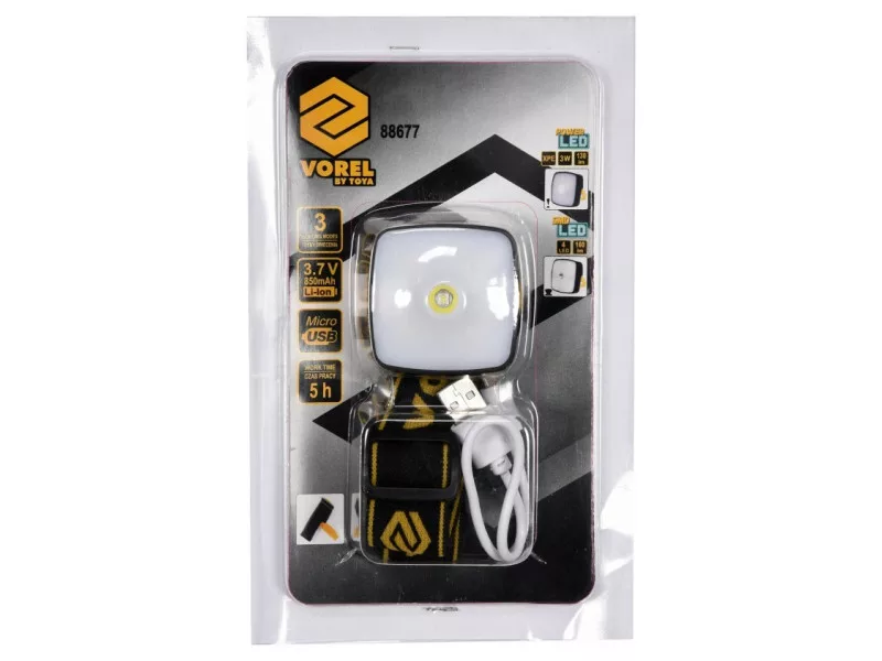 Vorel LED fejlámpa – kétféle fényforrással, USB-s tölthetőséggel