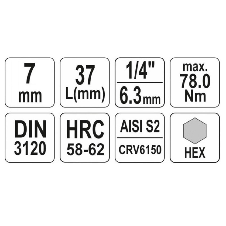 YATO 7X37mm 1/4" bit imbusz dugókulcs CrV