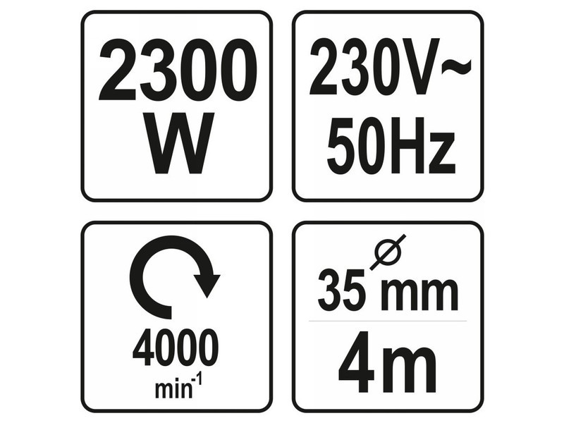 A YATO YT-82601 elektromos betontömörítő (tűvibrátor) professzionális eszköz, amely ideális választás építőipari alkalmazásokhoz, különösen frissbeton tömörítésére. A nagy teljesítményű, 2300 W-os motor és a 4000 fordulat/perc sebesség biztosítja a hatékony és gyors munkavégzést. A 4 méteres tömlő és a 35 mm-es fej átmérő lehetővé teszi a nehezen hozzáférhető helyek elérését is. Az eszköz IP20 védettséggel rendelkezik, így alkalmas beltéri használatra. A 6,6 kg-os súly és az ergonomikus kialakítás hozzájárul a felhasználó kényelméhez és a munka hatékonyságához.