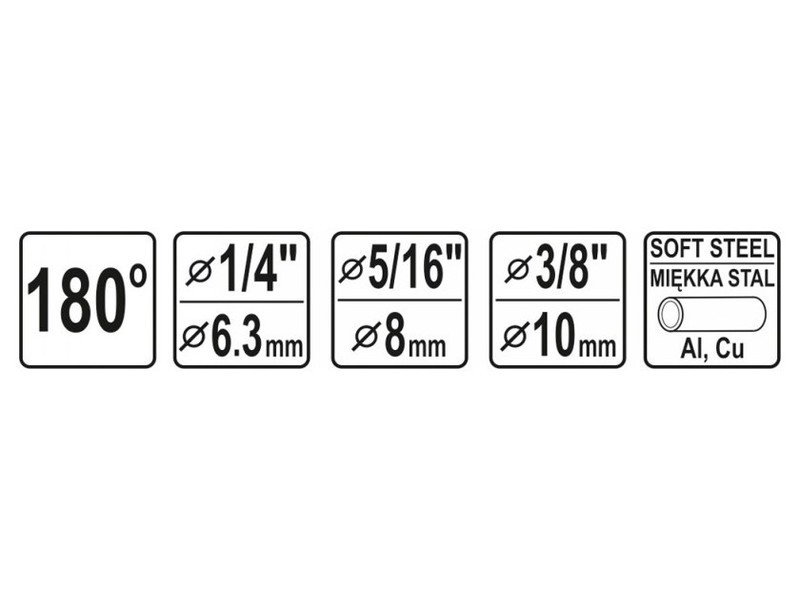 A YATO YT-21840 egy 3 az 1-ben kézi csőhajlító szerszám, amelyet 6 mm, 8 mm és 10 mm átmérőjű csövek precíz, 180°-os hajlítására terveztek. Ideális választás lágy réz-, sárgaréz-, alumínium- és lágy acélcsövekhez, különösen hidraulikai, fék-, gáz-, olaj- és légtechnikai rendszerek szerelésénél.