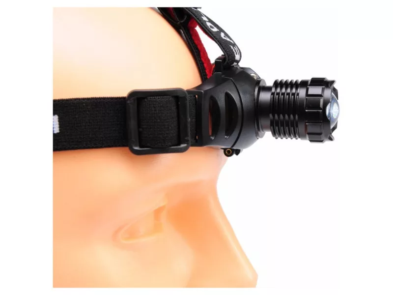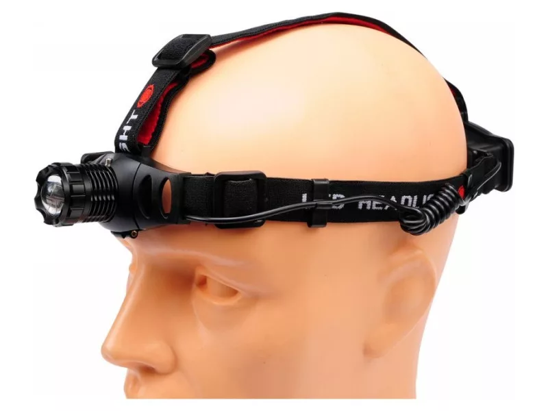 Könnyű fém fejlámpa, úgynevezett fejlámpa. Amatőr és szakmai használatra. 3W-os, 100lm-es nagy teljesítményű LED-del zoom funkció PMMA lencsével, ami lehetővé teszi a fényfókusz módosítását és a tárgyak megvilágítását akár 100m távolságra 3 fény mód (alap / gazdaságos / SOS) zoom funkció, ami módosítja a fény sugarát lehetőség a fény szögének megváltoztatására az elemeket tartalmazó rész a fej hátsó részén helyezkedik el, ezáltal megkönnyítve a lámpa előrészét és növelve a használatának stabilitását és kényelmét további piros fény a hátulján (hasznos például gyalogosoknak, futóknak és kerékpárosoknak) 3 állítható rugalmas fejpánt vízálló további bemenet az AC adapter számára, lehetővé téve az újratölthető akkumulátorokat használó felhasználóknak, hogy azokat kihúzás nélkül tölthessék fel. Ez USB+DC kábellel (5V, 1A/2A) lehetséges. Nincs további kábel a csomagban 3 dönthető pont Használati figyelmeztetések: Figyelem. Szemkárosodás veszélye. Ne irányítsa a fénysugárt a szembe! Súlyos látásproblémákat okozhat.