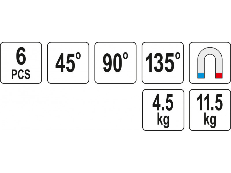 YATO mágneses hegesztési szögkészlet – YT-08678 | 6 db | 4,5 kg / 11,5 kg