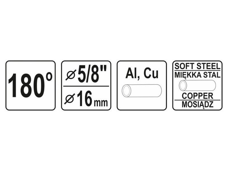 A YATO YT-21845 egy 16 mm (5/8") átmérőjű kézi csőhajlító, amelyet lágy réz-, alumínium- és enyhe acélcsövek precíz, 180°-os hajlítására terveztek. A szerszám kialakítása biztosítja, hogy a csövek ne roppanjanak össze hajlítás közben, így megőrizhető a belső átmérő és a rendszer hatékonysága.