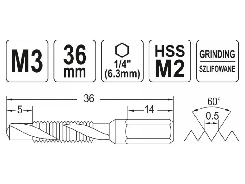 YATO kombinált fúró-menetfúró – YT-44840 | M3 × 0.5 mm