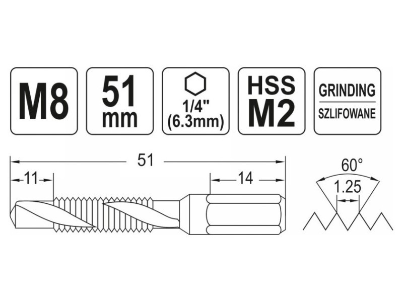 YATO kombinált fúró-menetfúró – YT-44845 | M8 × 1.25 mm