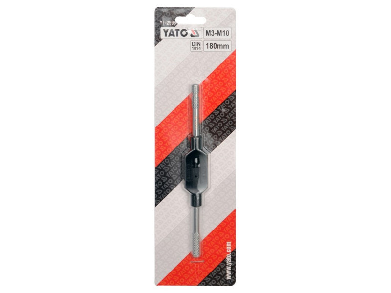 A YATO YT-2996 egy 180 mm hosszú hajtókar, amelyet kifejezetten kézi menetfúrók forgatására terveztek. Kompatibilis az M3–M10 méretű menetfúrókkal, így ideális választás műhelymunkákhoz, karbantartáshoz és barkácsprojektekhez, ahol a precíz irányíthatóság és megfelelő nyomaték kulcsfontosságú.
