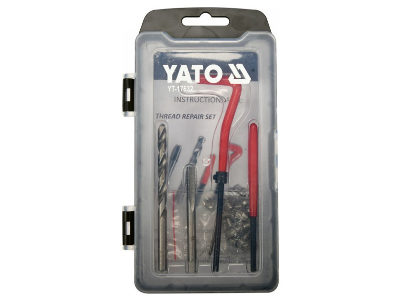 A YATO YT-17632 egy kompakt, mégis professzionális spirális menetjavító készlet, amelyet kifejezetten M6 × 1.0 mm-es sérült menetek helyreállítására terveztek. A készlet tartalmaz minden szükséges eszközt a pontos és tartós javításhoz: HSS fúró, HSS menetvágó, behajtó szerszám, törőszerszám és rozsdamentes acél spirálbetétek.