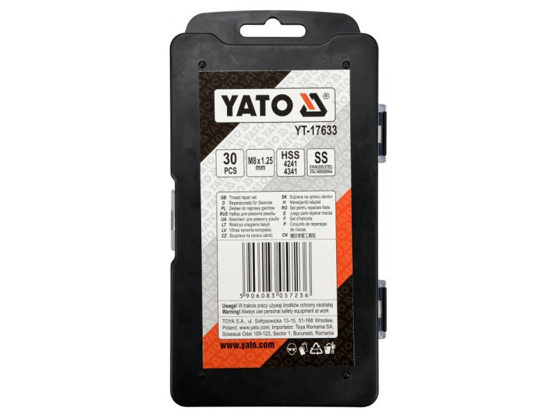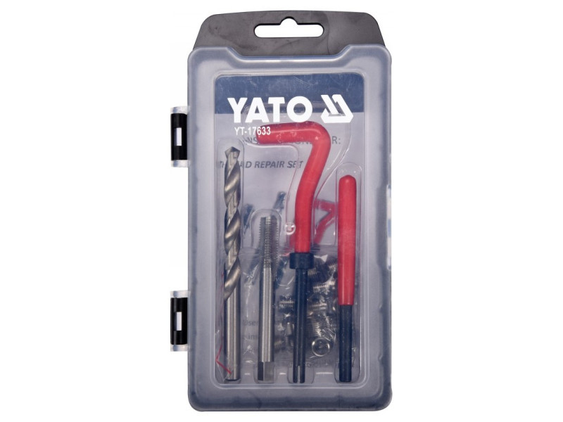 A YATO YT-17633 egy professzionális spirális menetjavító készlet, amelyet kifejezetten M8 × 1.25 mm-es sérült menetek helyreállítására terveztek. A készlet elemei tartós rozsdamentes acélból és HSS gyorsacélból készültek, így hosszú élettartamot és precíz munkavégzést biztosítanak.