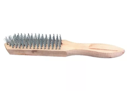 A fából készült test acélhuzal sörtével rendelkezik.