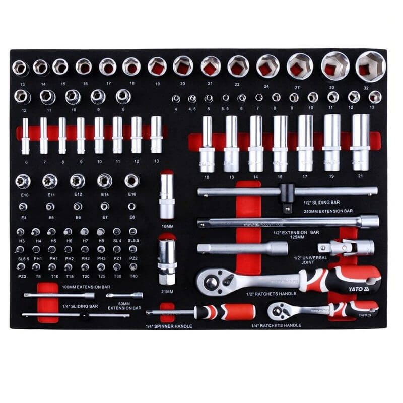 A YATO YT-55290 szerszámkocsi egy professzionális, 7 fiókos szerszámszekrény, amely kifejezetten autószerelő műhelyek és járműszervizek számára készült. A fiókok közül az első 5 összesen 211 gondosan válogatott szerszámot tartalmaz, így a legfontosabb kéziszerszámok mindig kéznél vannak. A golyóscsapágyas fiókvezetők biztosítják a könnyű és tartós működést, még nagy terhelés esetén is.