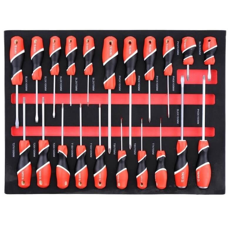 - Csavarhúzók (lapos, kereszt (PH), Torx)