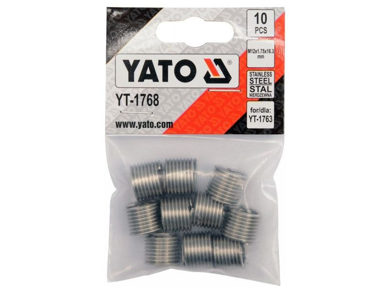 A YATO YT-1768 egy 10 darabos spirális menetjavító betétkészlet, amelyet kifejezetten M12 × 1.75 mm-es menetek helyreállítására terveztek. A betétek rozsdamentes acélból (INOX) készültek, így rendkívül tartósak, kopásállók és korrózióállók.